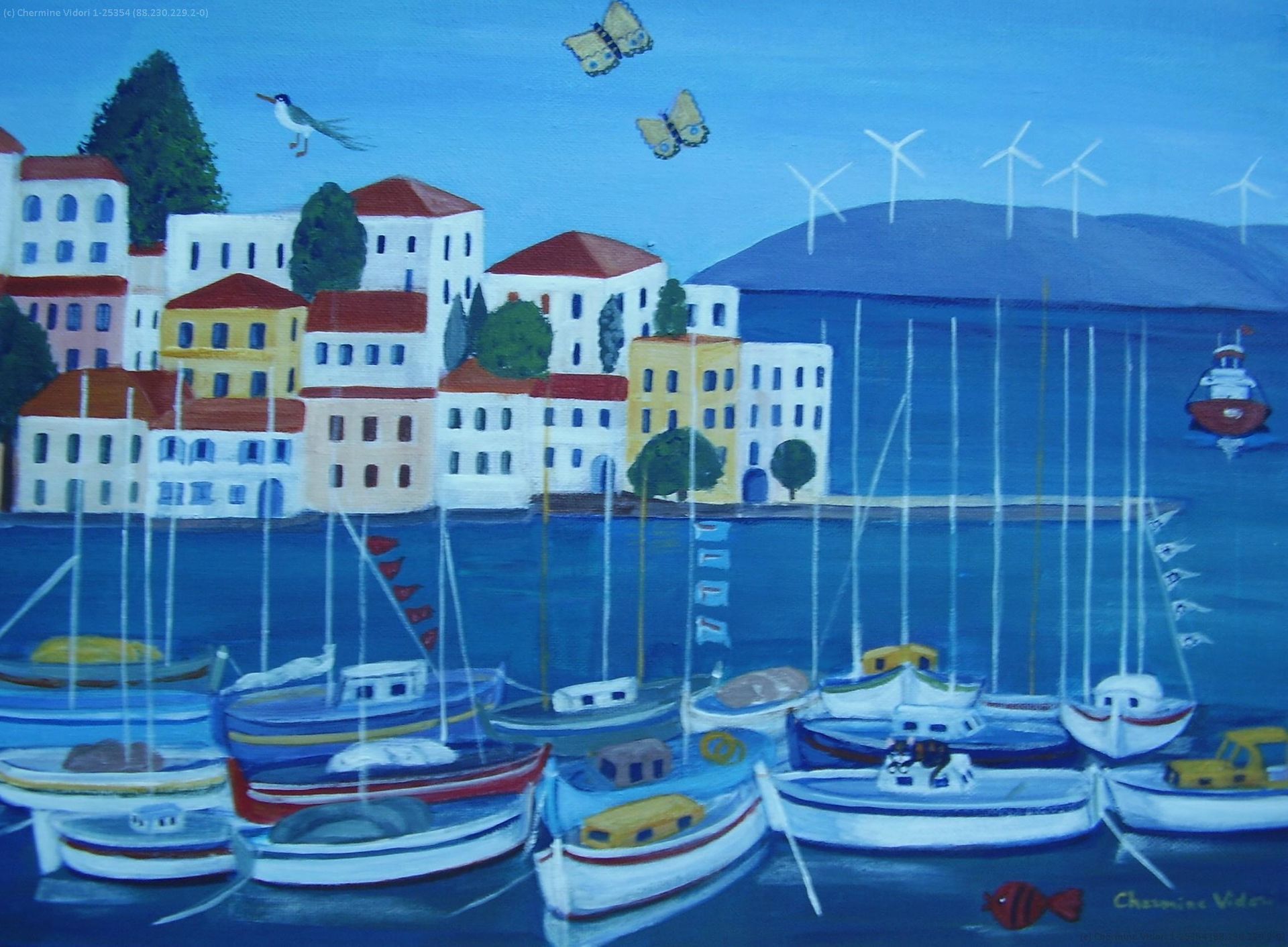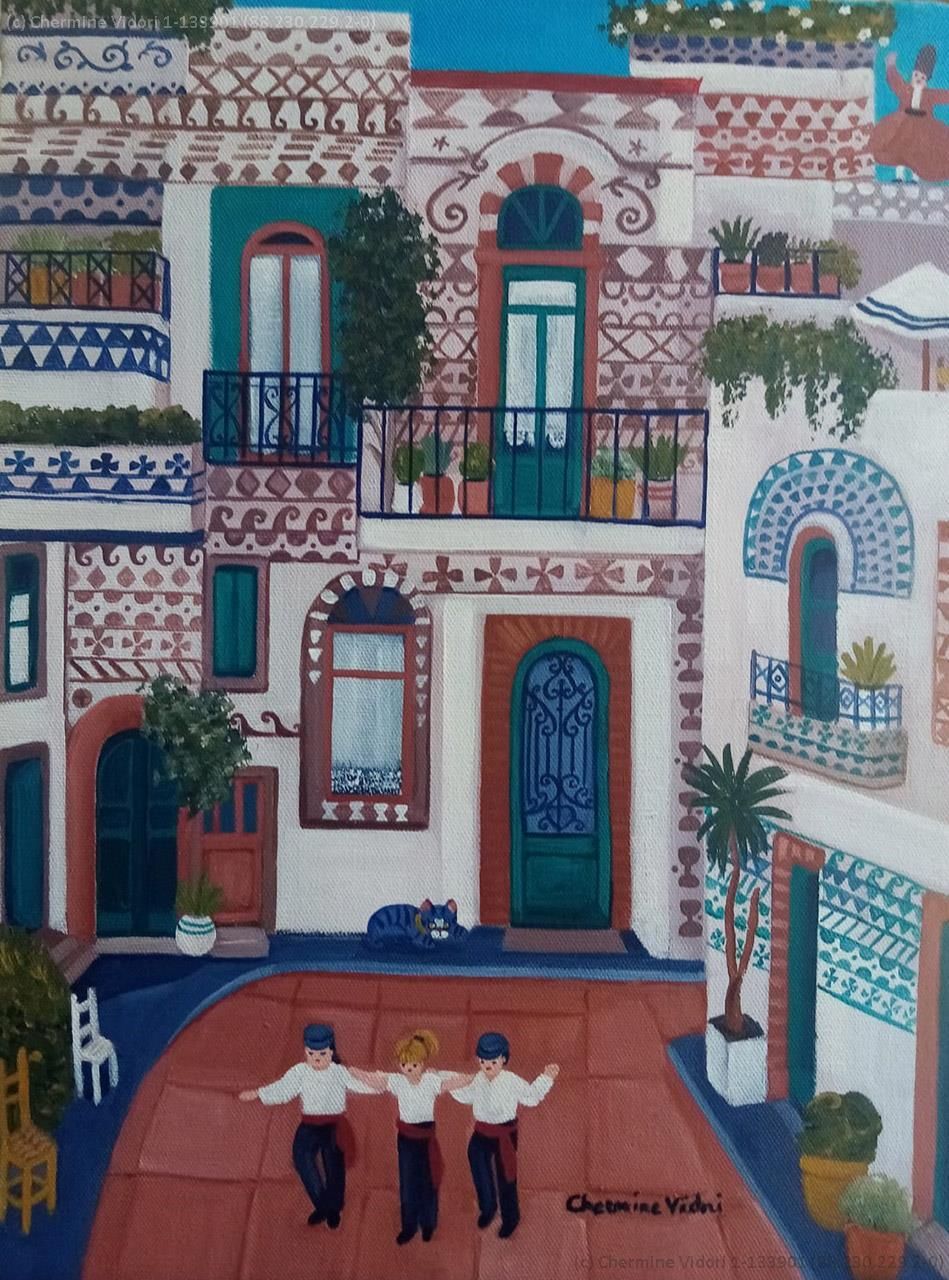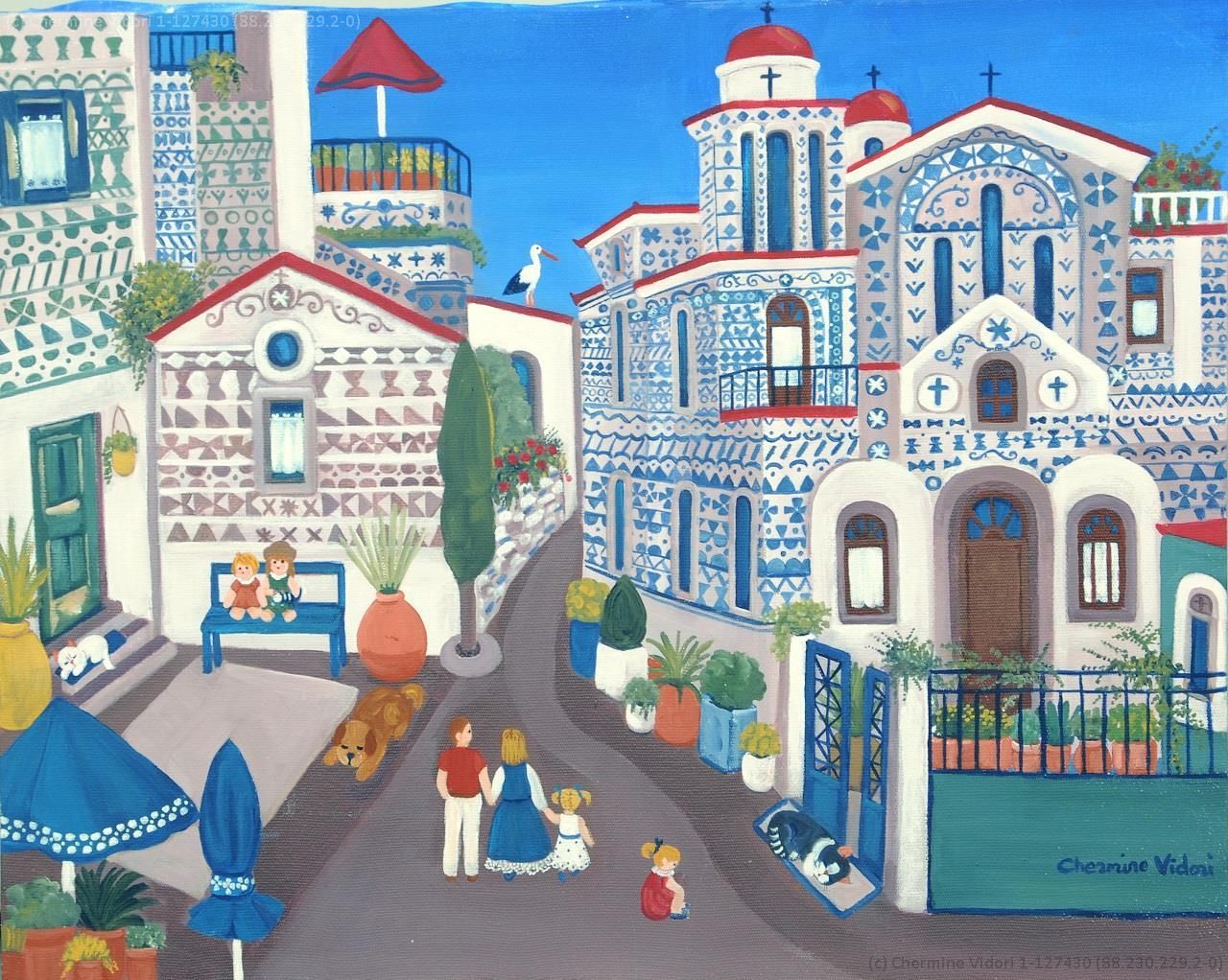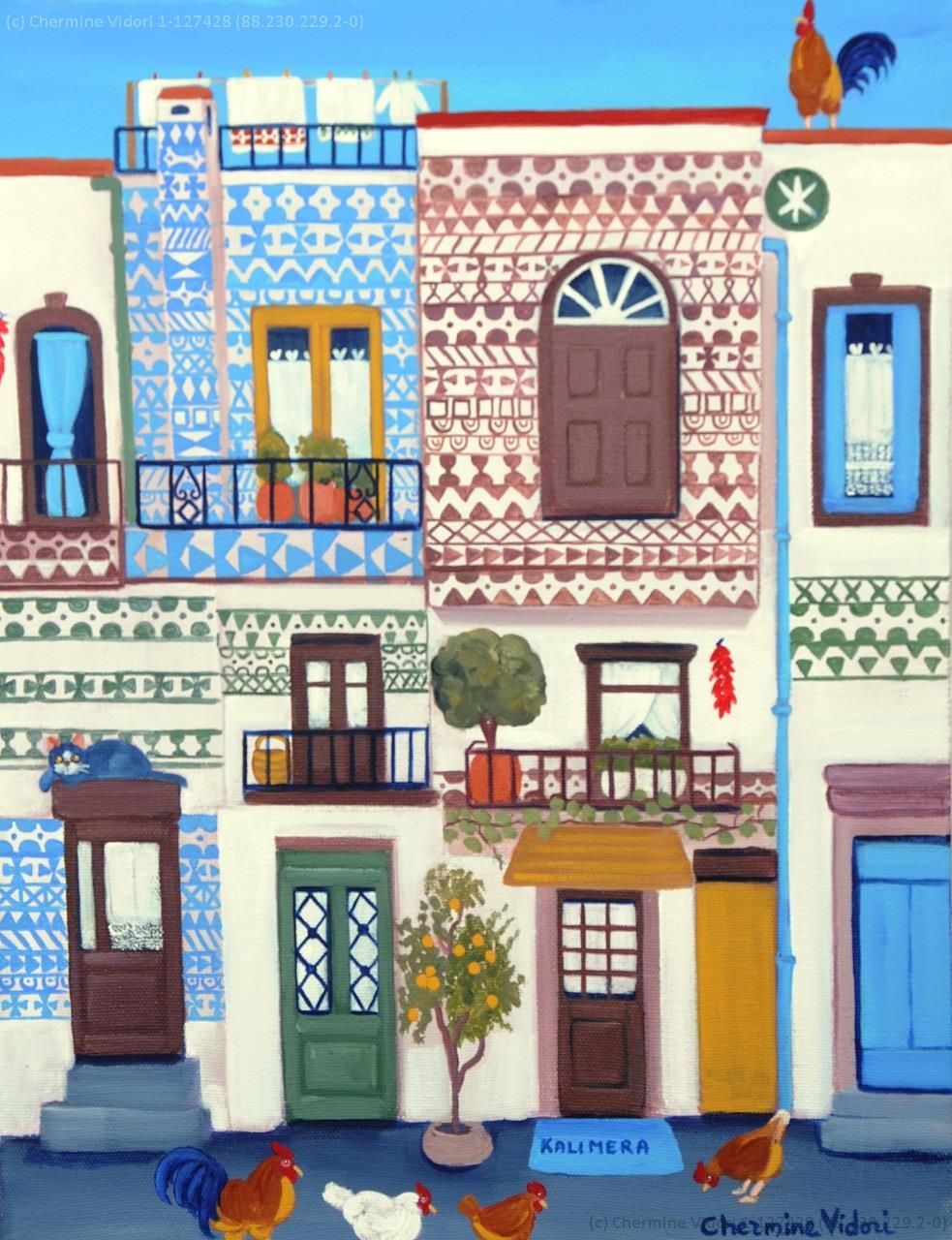 Bir Chios ziyaretinde ise Pyrgi deki duvarların harika bir dekor olacağını düşünerek resim yapmaya başlamış. Çocukken büyüklerinin Rumca konuştuğunu da hatırlayarak sanki her birisinde kendide Rumca konuştuğunu hayal ediyor.