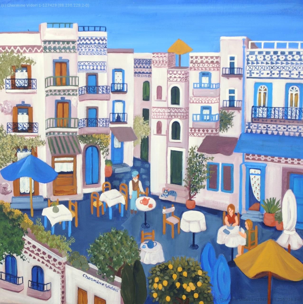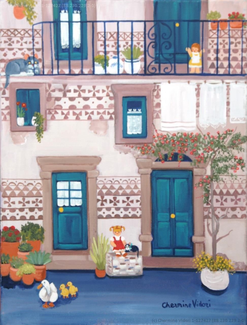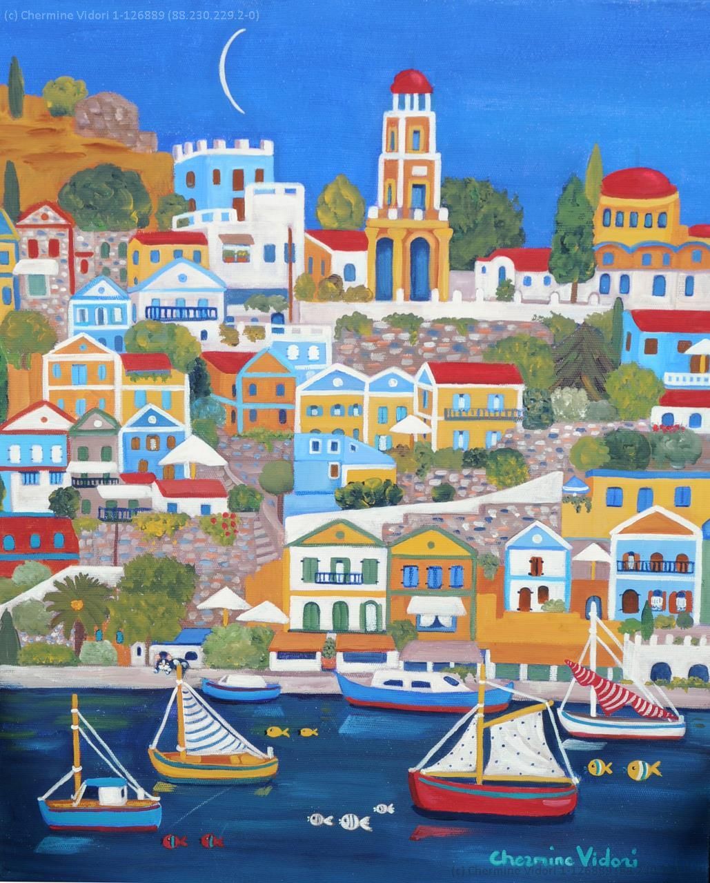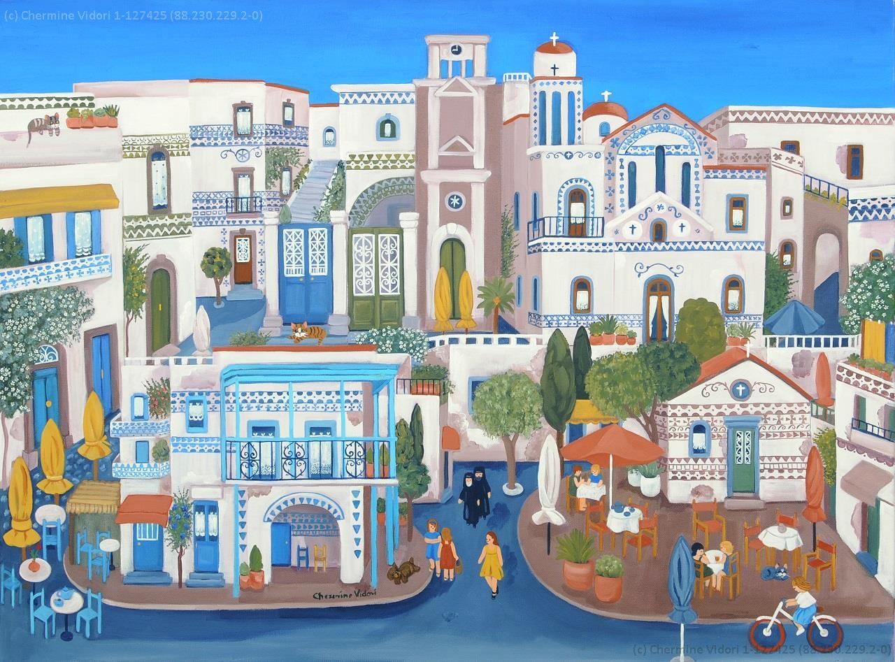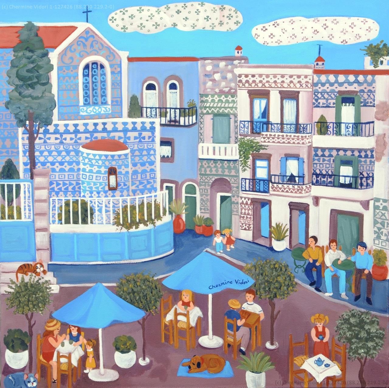 Bir Chios ziyaretinde ise Pyrgi deki duvarların harika bir dekor olacağını düşünerek resim yapmaya başlamış. Çocukken büyüklerinin Rumca konuştuğunu da hatırlayarak sanki her birisinde kendide Rumca konuştuğunu hayal ediyor.