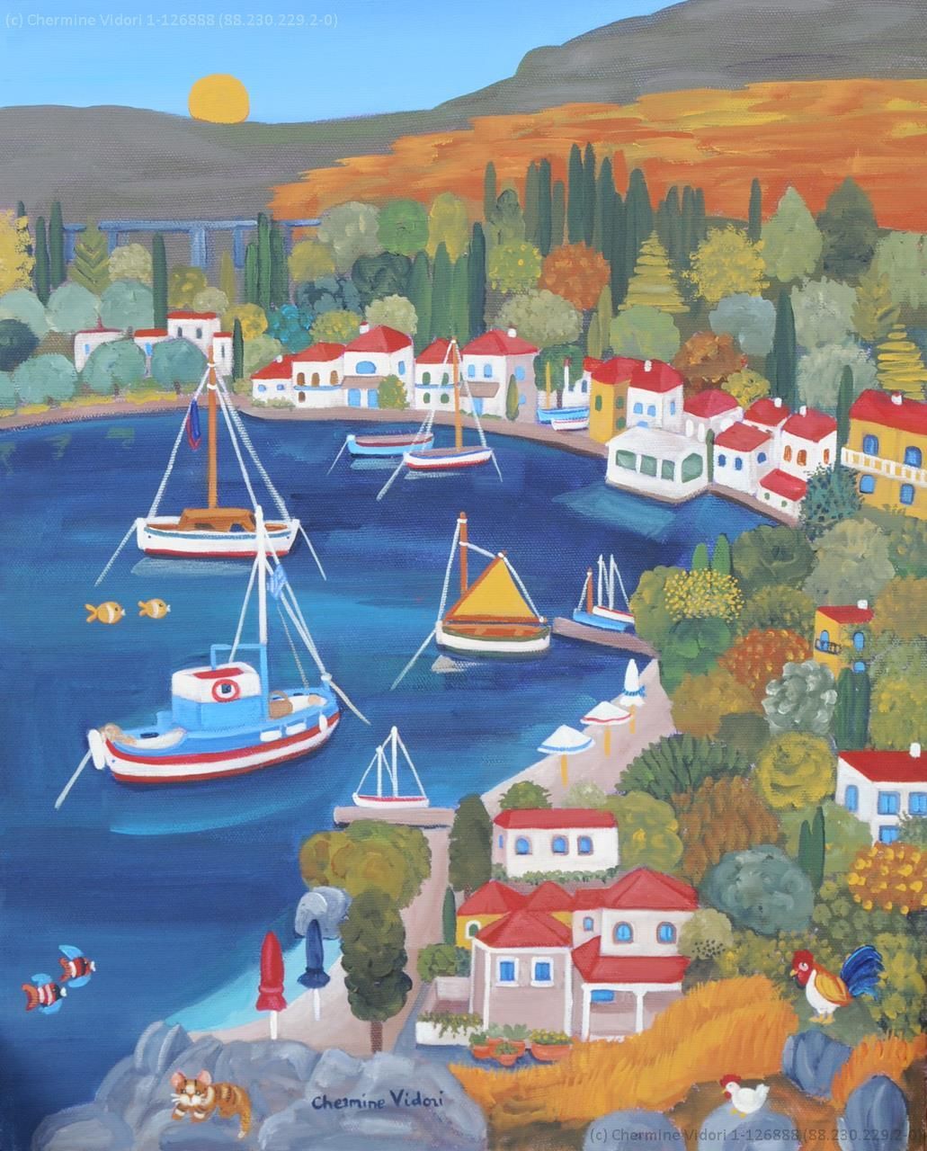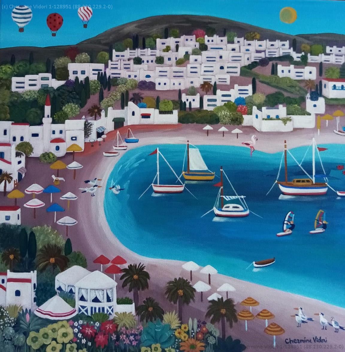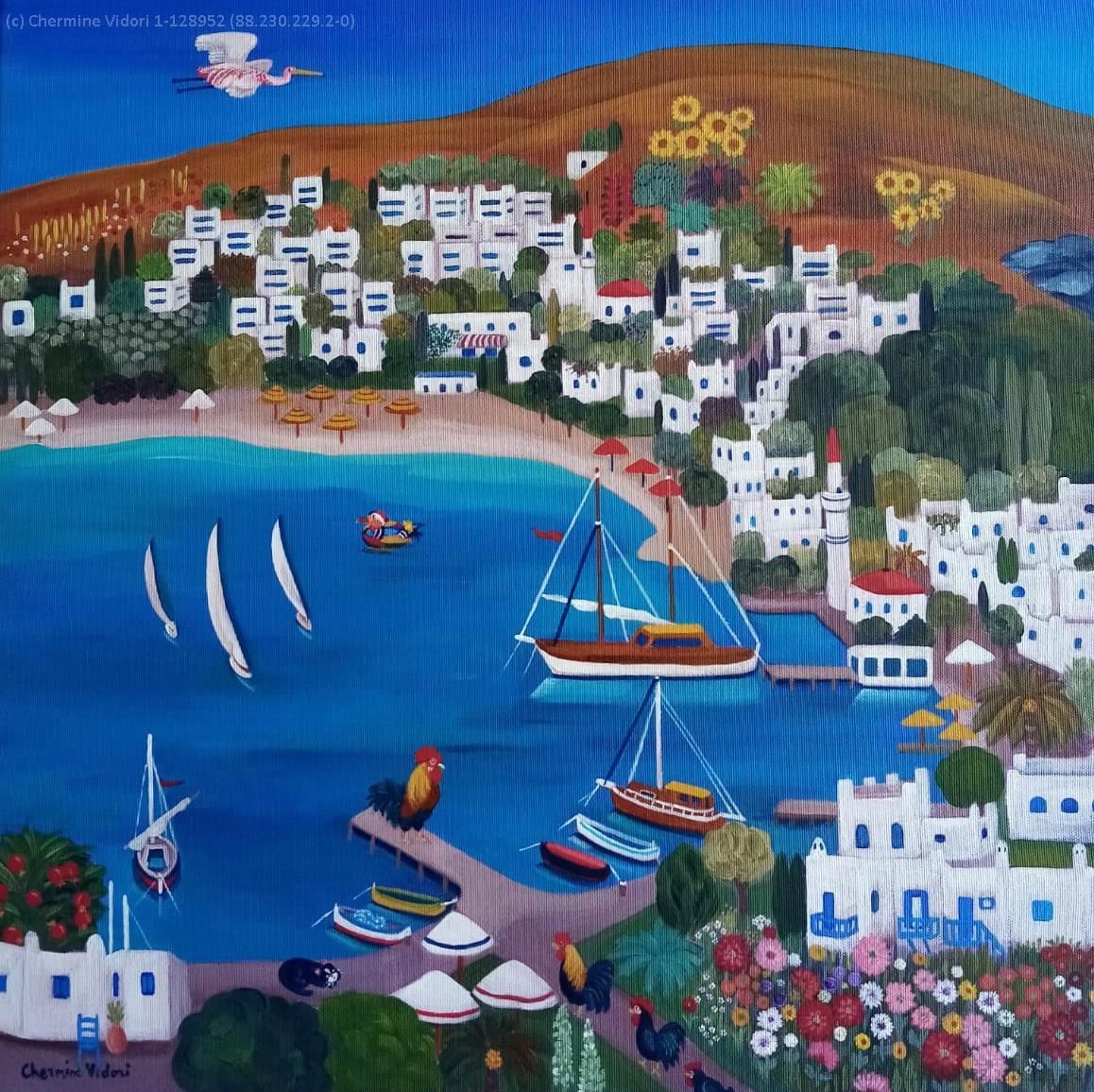 Chermine'in Bodrum sevgisi onun beyaz evleri ve mavisi ile başlamış. Tekneye binmekten hoşlanmasa bile, onları izlemeyi, görmeyi resmetmeyi çok sevmiş. Ilıcada tekne turlarına biner arkadaşları ile denize gitmeyi hep çok sevmiş.