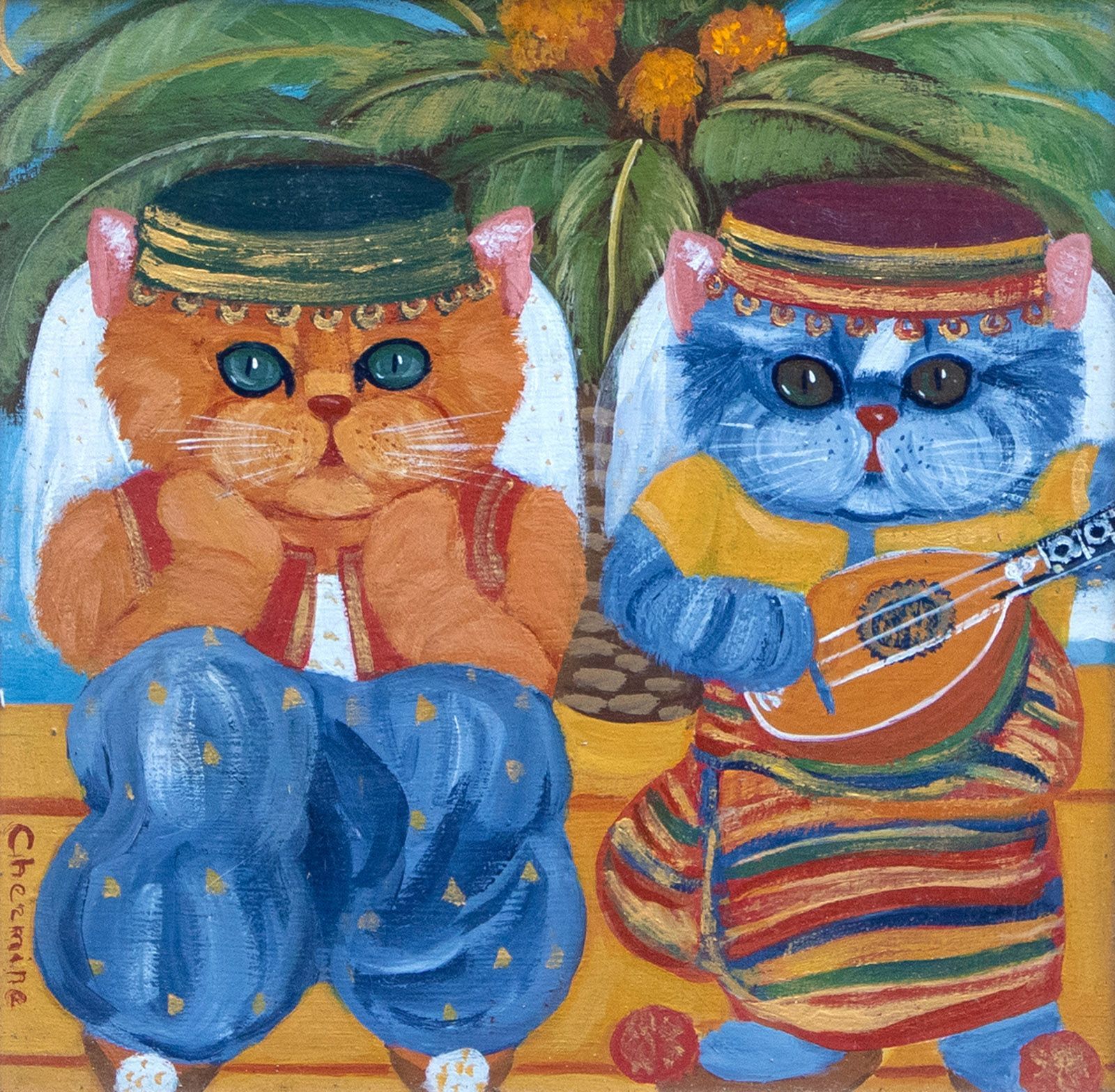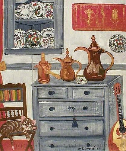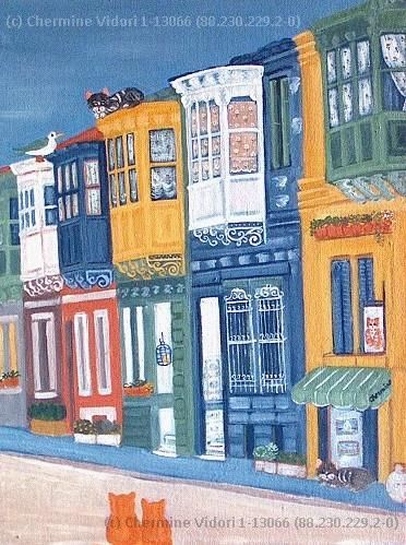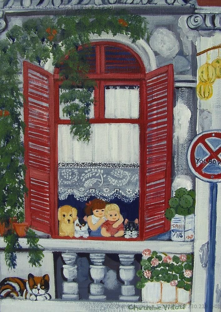 Çocuklarının oyuncakları ile başlayan daha sonra ise malzeme kalmayınca fotoğraf makinası alıp vitrinde gördüklerini fotoğraflayıp onları resmeden Chermine her yeni ressam gibi bir başlangıç döneminden geçti. BU yol onu sokaklara, kapılara, pencerelere sürükledi. Bu koleksiyonda bu ilk döneme ait eserleri bulabilirsiniz.