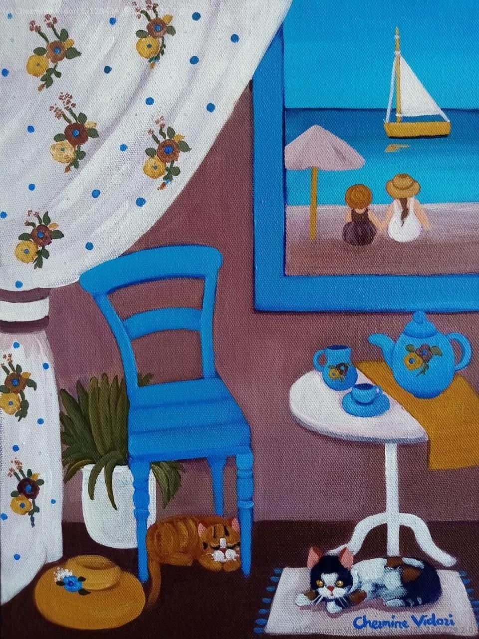 İzmir'de Bornova'da büyüyen Chermine, hep bahçelerde dolaşmış. Bahçelerdeki sandalyeler ve çiçekler ona çocukluğunu, masalardaki İngiliz tarzı çay sofraları ise büyürken evde gördüğü gelenekleri yansıtıyor.